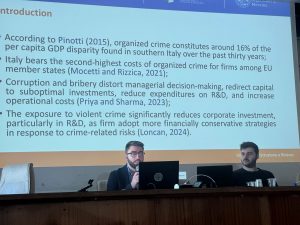 Il 19 maggio 2025 il Dott. Marco Spadaro ha presentato il paper “The Silent Stranglehold: Quantifying Organized Crime’s Chilling Effect on Firm Efficiency and R&D”, realizzato insieme ai Professori Antonio Fabio Forgione e Carlo Migliardo, durante il workshop Migration, migrants, and women: between work, consumption and invisible barriers, tenutosi al Dipartimento di Economia dell’Università degli Studi di Messina.